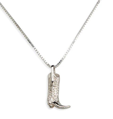 Sterling Silver Rusty Boot Necklace with an 18 inch Sterling Silver chain. Handmade in the USA.