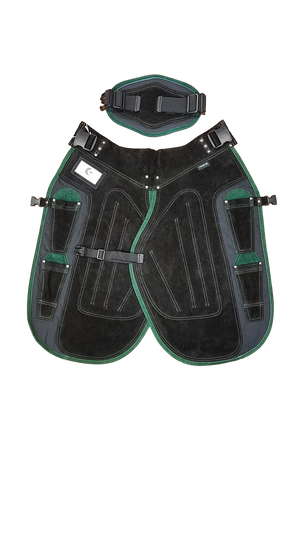 - Buckles at the waist and thighs.
